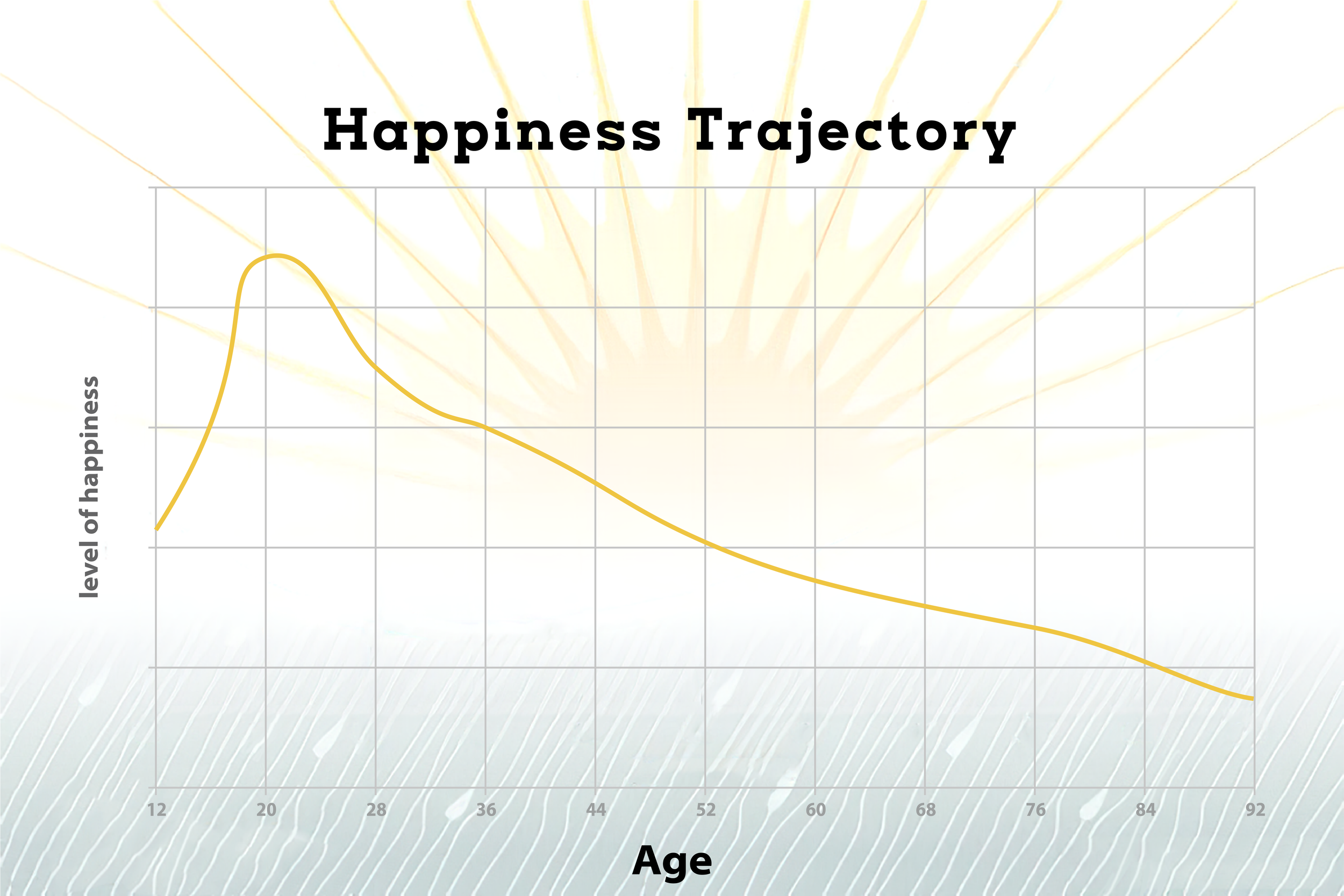 Take the "College is the best four years of your life!" narrative. If students aren't having the Best. Time. Ever. it can feel like failure. But seriously, who wants to peak by 22? If that were true, your happiness would look like one long downhill after graduation. Like this FAKE graph: